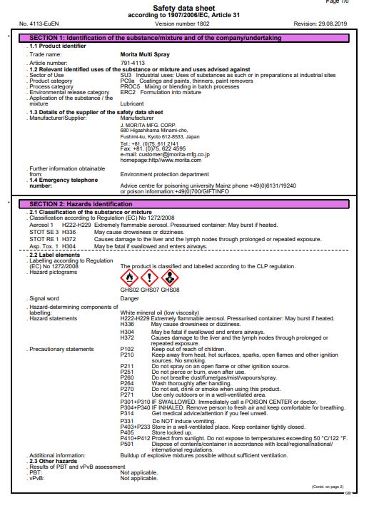 Dati di sicurezza AVALON Gel MTA Plus di SDS
