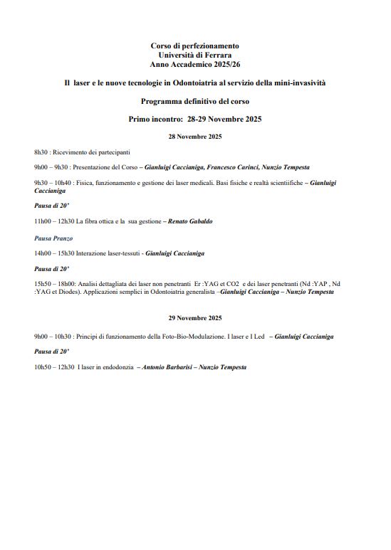 Corso del 24 e 25 ottobre 2025 del Dott. Riccardo Baratto
