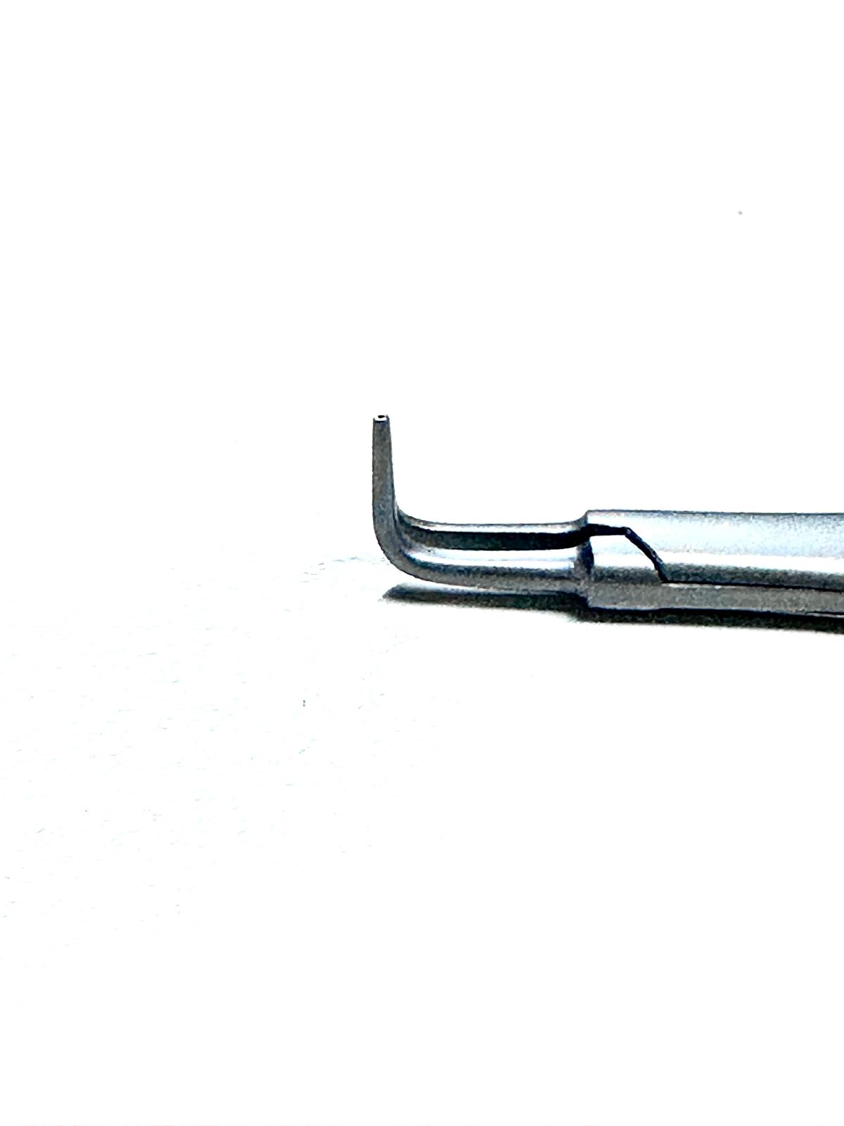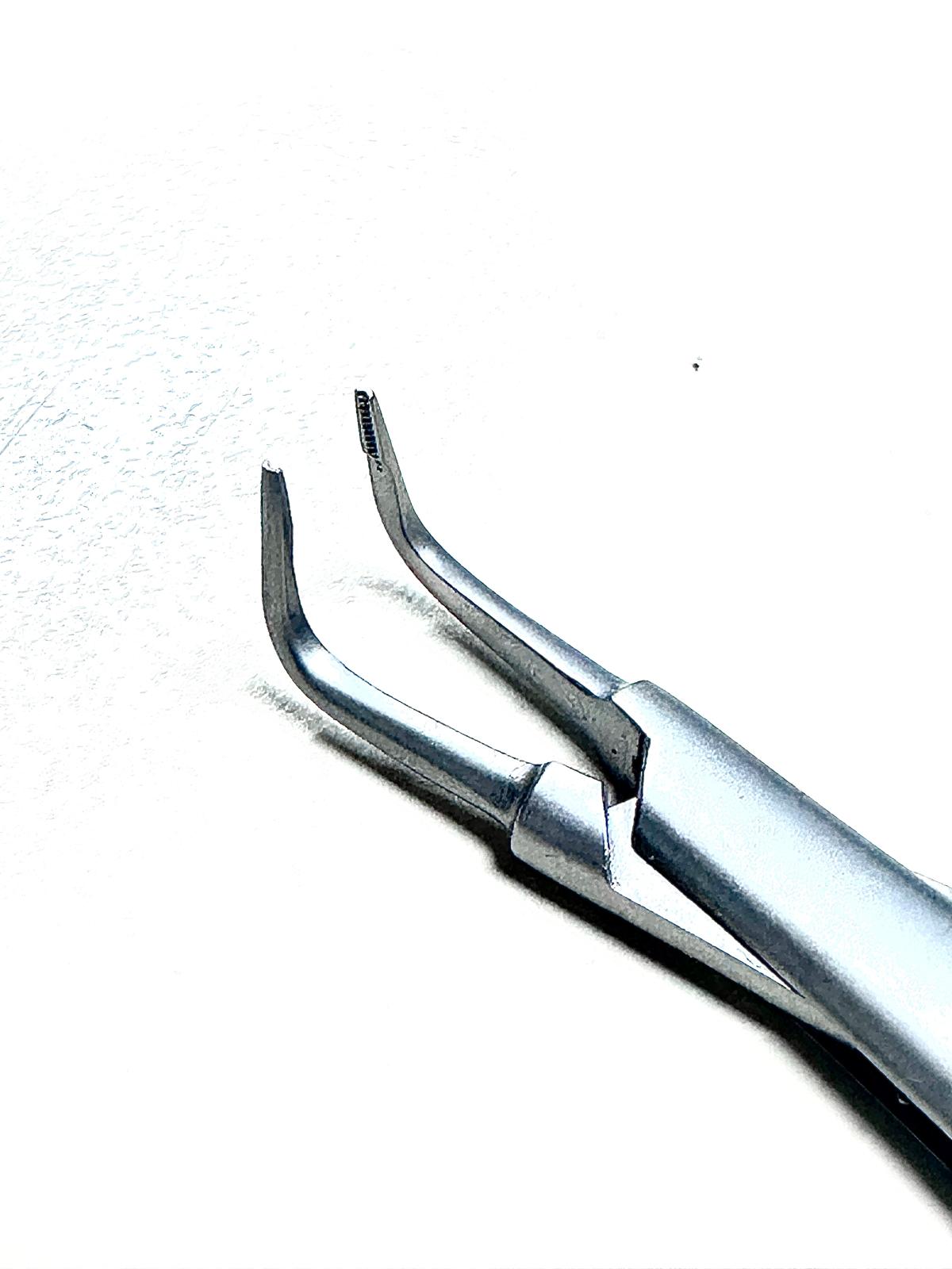 IFSP Pinzette endodontiche 15 cm - angolazione 90°Per radici e frammentiPinza endodontica robusta con becchi sottili, studiata per estremità radicolari, perni e punte.