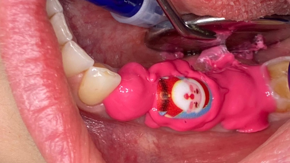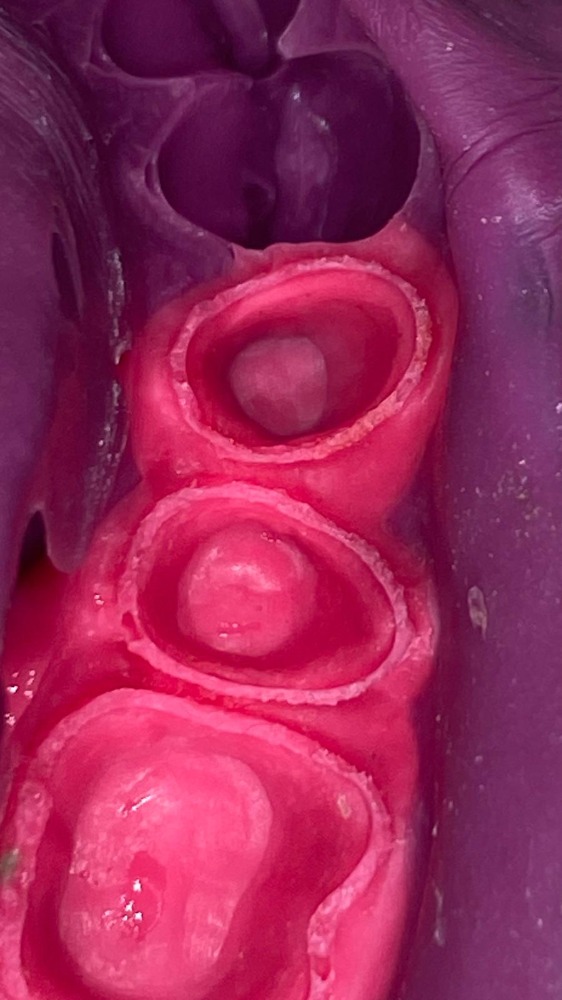 Posizionarlo saldamente sul colletto del dente e premerlo nel solco gengivale utilizzando un plugger. Rimuovere il filo quando si prende un'impronta.